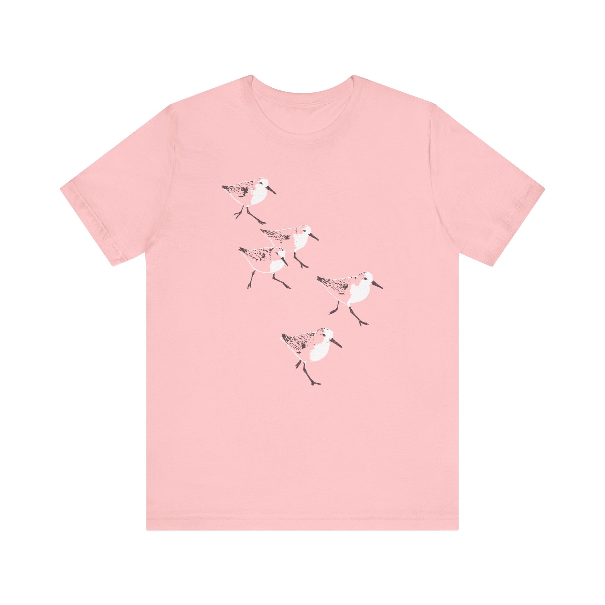 Skittering across the wet sand—alternately chasing the waves then fleeing from them—Sanderlings (Calidris alba) are well-loved little darlings on beaches around the world. You'll give off some shoreline and shorebirding vibes with this stylish shirt.